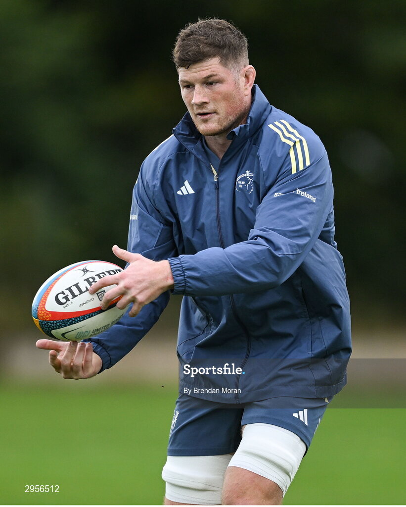 8 October 2024; Jack O'Donoghue during Munster rugby squad training at University of Limerick in Limerick. Photo by Brendan Moran/Sportsfile