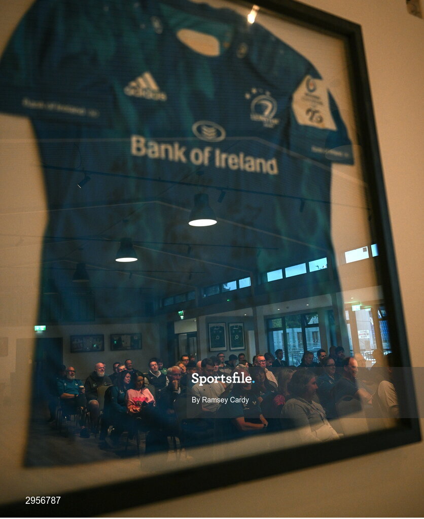 8 October 2024; Supporters are reflected in a Leinster jersey during a Leinster Rugby Supporters Q&A at Bective Rangers RFC in Dublin. Photo by Ramsey Cardy/Sportsfile