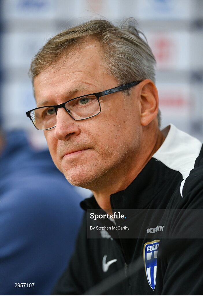 9 October 2024; Head coach Markku Kanerva during a Finland press conference at the Helsinki Olympic Stadium in Helsinki, Finland. Photo by Stephen McCarthy/Sportsfile