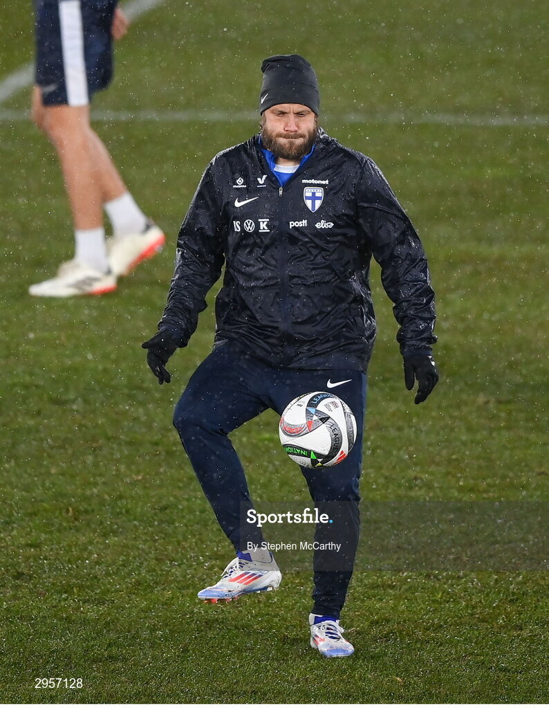 9 October 2024; Teemu Pukki during a Finland training session at the Helsinki Olympic Stadium in Helsinki, Finland. Photo by Stephen McCarthy/Sportsfile