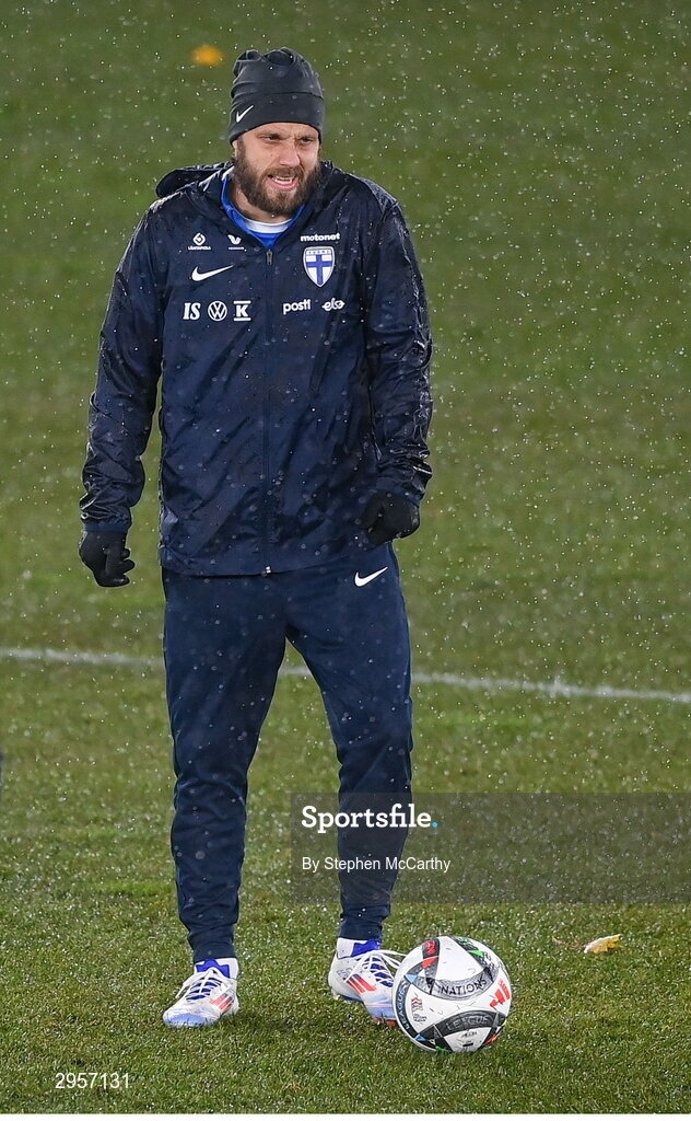 9 October 2024; Teemu Pukki during a Finland training session at the Helsinki Olympic Stadium in Helsinki, Finland. Photo by Stephen McCarthy/Sportsfile
