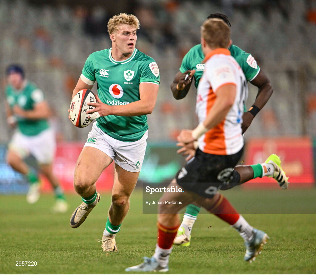 9 October 2024; Hugh Gavin of Ireland in action against the Toyota Cheetahs during the Toyota Challenge Match between Toyota Cheetahs and Emerging Ireland at Toyota Stadium in Bloemfontein, South Africa. Photo by Johan Pretorius/Sportsfile