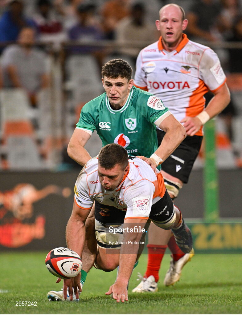 9 October 2024; Cormac Foley of Ireland, centre, during the Toyota Challenge Match between Toyota Cheetahs and Emerging Ireland at Toyota Stadium in Bloemfontein, South Africa. Photo by Johan Pretorius/Sportsfile