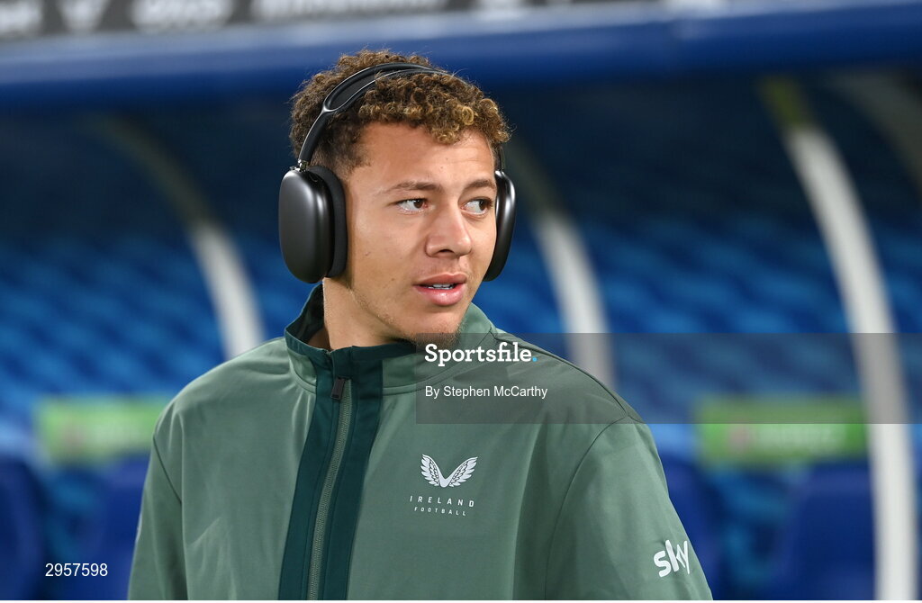 10 October 2024; Kasey McAteer of Republic of Ireland before the UEFA Nations League B Group 2 match between Finland and Republic of Ireland at the Helsinki Olympic Stadium in Helsinki, Finland. Photo by Stephen McCarthy/Sportsfile