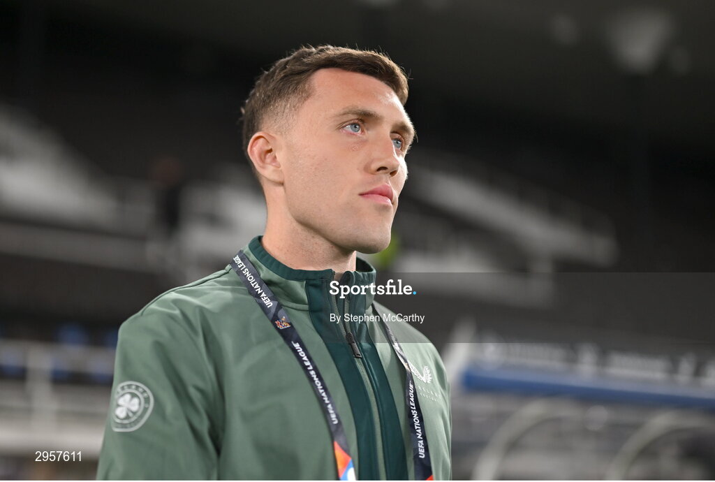 10 October 2024; Dara O'Shea of Republic of Ireland before the UEFA Nations League B Group 2 match between Finland and Republic of Ireland at the Helsinki Olympic Stadium in Helsinki, Finland. Photo by Stephen McCarthy/Sportsfile