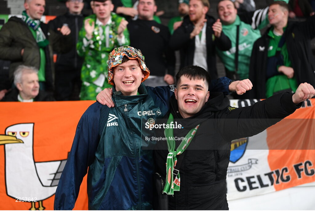 10 October 2024; Republic of Ireland supporters before the UEFA Nations League B Group 2 match between Finland and Republic of Ireland at the Helsinki Olympic Stadium in Helsinki, Finland. Photo by Stephen McCarthy/Sportsfile