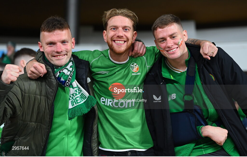 10 October 2024; Republic of Ireland supporters before the UEFA Nations League B Group 2 match between Finland and Republic of Ireland at the Helsinki Olympic Stadium in Helsinki, Finland. Photo by Stephen McCarthy/Sportsfile