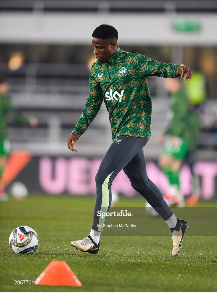 10 October 2024; Chiedozie Ogbene of Republic of Ireland before the UEFA Nations League B Group 2 match between Finland and Republic of Ireland at the Helsinki Olympic Stadium in Helsinki, Finland. Photo by Stephen McCarthy/Sportsfile