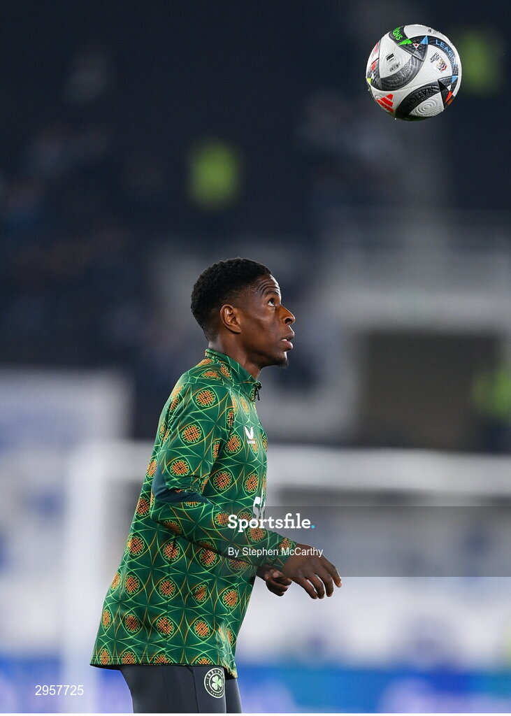 10 October 2024; Chiedozie Ogbene of Republic of Ireland before the UEFA Nations League B Group 2 match between Finland and Republic of Ireland at the Helsinki Olympic Stadium in Helsinki, Finland. Photo by Stephen McCarthy/Sportsfile