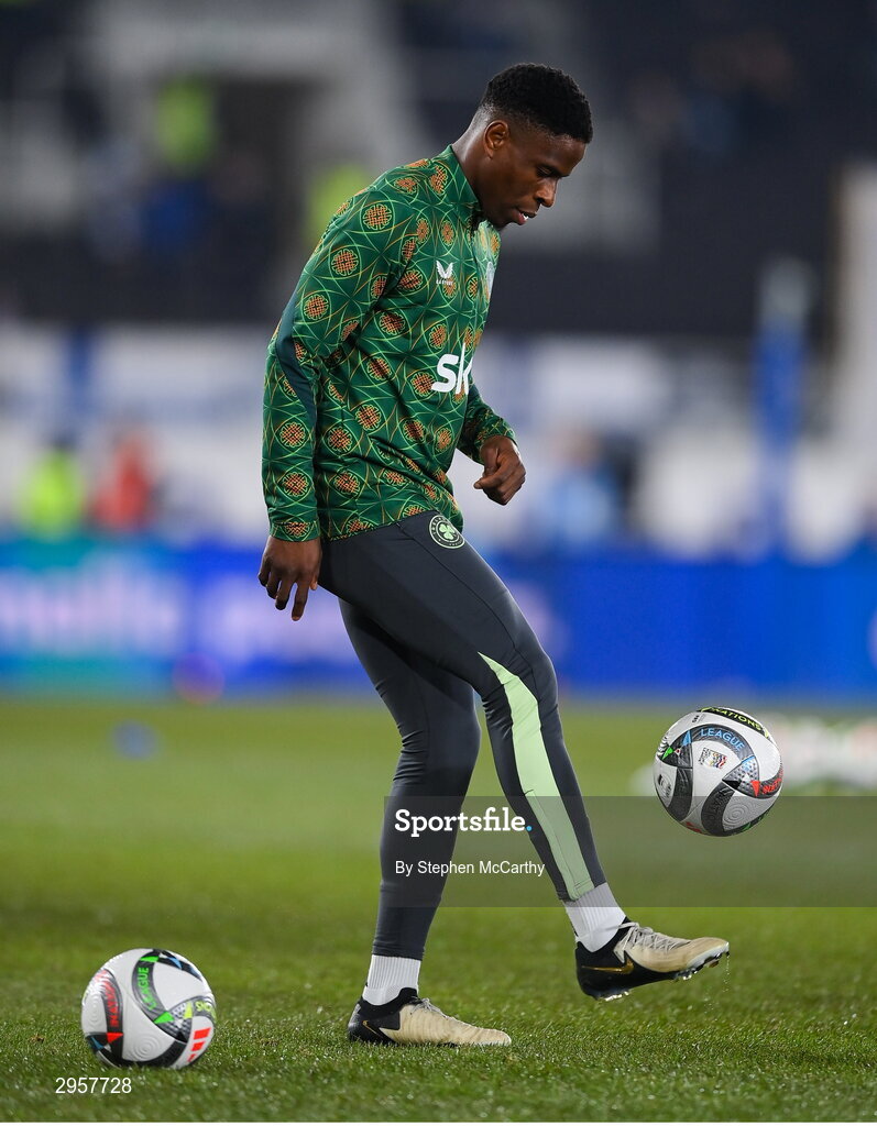 10 October 2024; Chiedozie Ogbene of Republic of Ireland before the UEFA Nations League B Group 2 match between Finland and Republic of Ireland at the Helsinki Olympic Stadium in Helsinki, Finland. Photo by Stephen McCarthy/Sportsfile