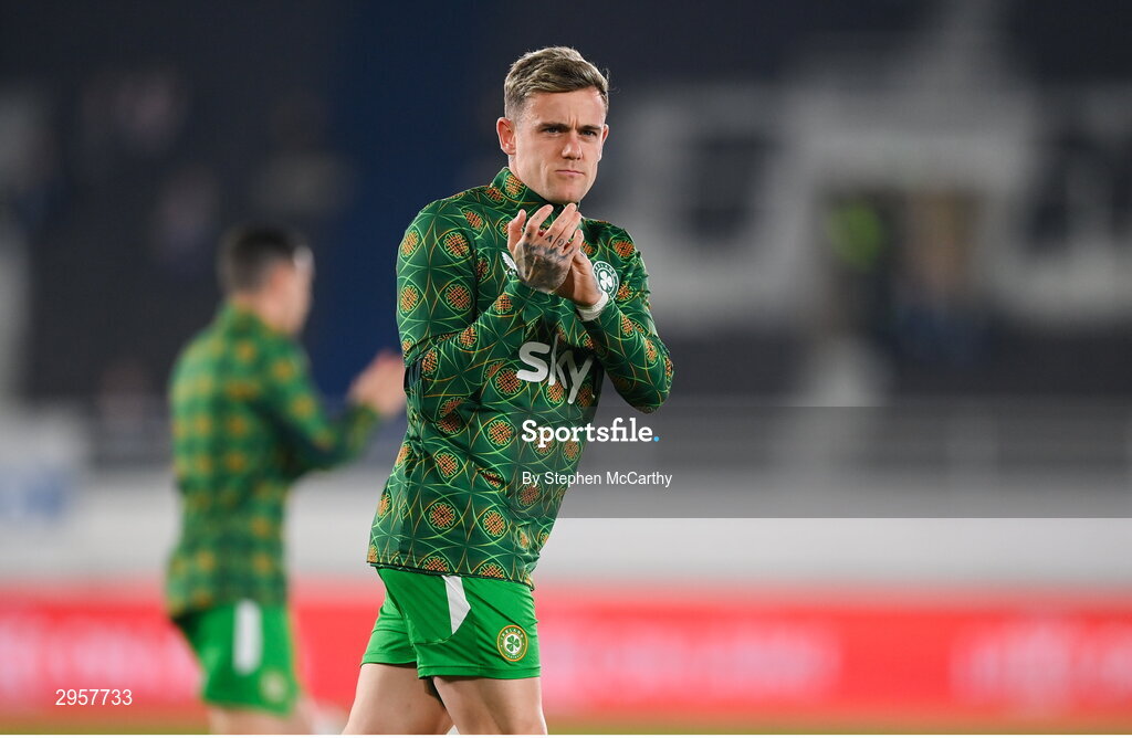 10 October 2024; Sammie Szmodics of Republic of Ireland before the UEFA Nations League B Group 2 match between Finland and Republic of Ireland at the Helsinki Olympic Stadium in Helsinki, Finland. Photo by Stephen McCarthy/Sportsfile
