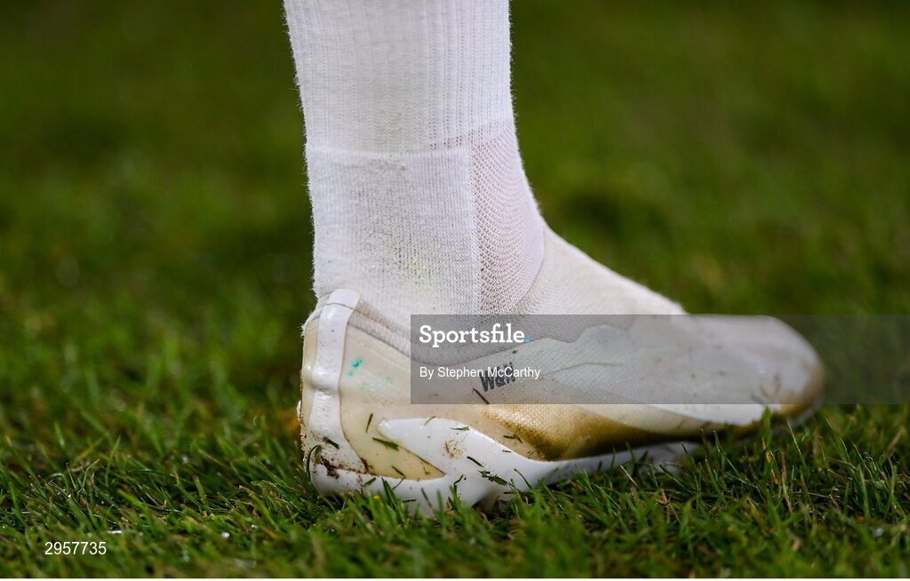 10 October 2024; A detailed view of the boot of Sammie Szmodics of Republic of Ireland before the UEFA Nations League B Group 2 match between Finland and Republic of Ireland at the Helsinki Olympic Stadium in Helsinki, Finland. Photo by Stephen McCarthy/Sportsfile