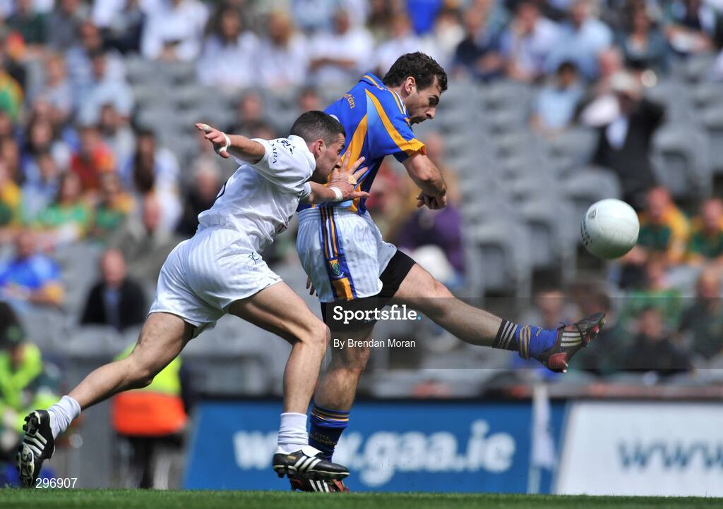18 May 2008; Tony Hannon, Wicklow, kicks a point despite the attentions of Andrew McLoughlin, Kildare. GAA Football Leinster Senior Championship 1st Round, Kildare v Wicklow, Croke Park, Dublin. Picture credit: Brendan Moran / SPORTSFILE
