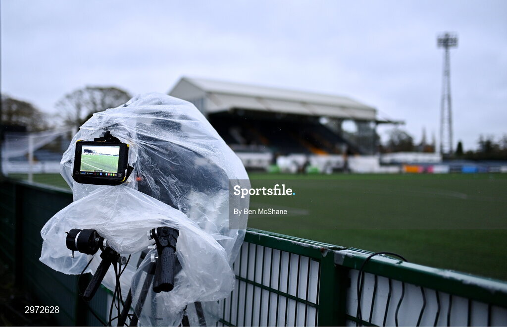 27 October 2024; A broadcast camera is seen before the SSE Airtricity Men's Premier Division match between Dundalk and Shamrock Rovers at Oriel Park in Dundalk, Louth. Photo by Ben McShane/Sportsfile