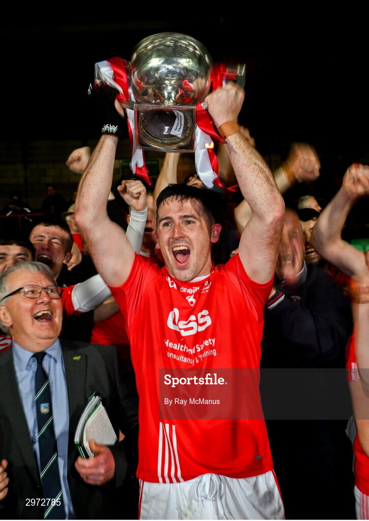 27 October 2024; Darragh O'Donovan of Doon lifts the John Daly Cup after the Limerick County Senior Club Hurling Championship final match between Na Piarsaigh and Doon at TUS Gaelic Grounds in Limerick. Photo by Ray McManus/Sportsfile