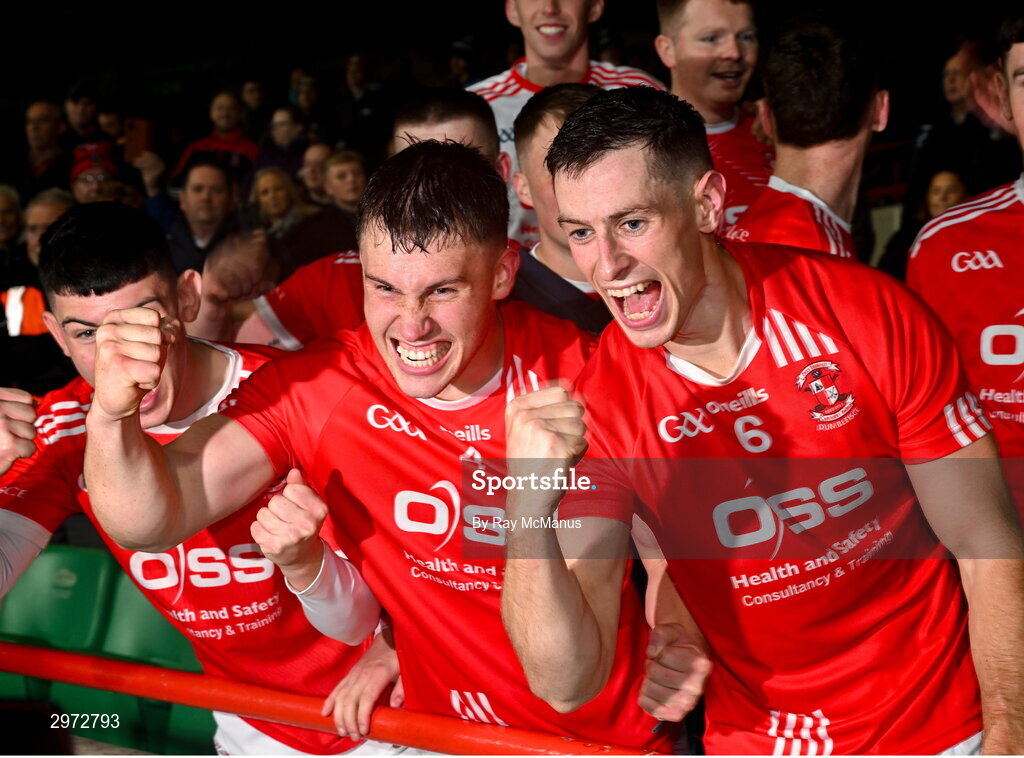 27 October 2024; Cian O'Donovan, 4, and Barry Murphy of Doon celebrate after the Limerick County Senior Club Hurling Championship final match between Na Piarsaigh and Doon at TUS Gaelic Grounds in Limerick. Photo by Ray McManus/Sportsfile