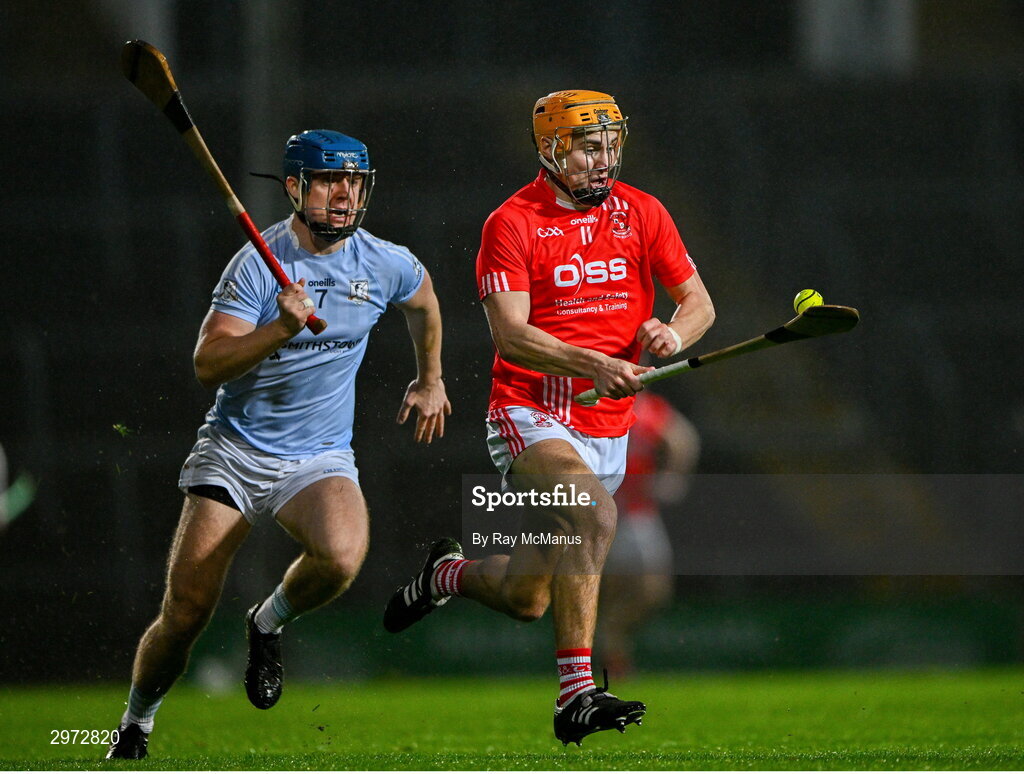 27 October 2024; Adam English of Doon races clear of Will Henn of Na Piarsaigh during the Limerick County Senior Club Hurling Championship final match between Na Piarsaigh and Doon at TUS Gaelic Grounds in Limerick. Photo by Ray McManus/Sportsfile