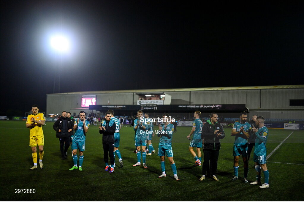 27 October 2024; Shamrock Rovers players after the SSE Airtricity Men's Premier Division match between Dundalk and Shamrock Rovers at Oriel Park in Dundalk, Louth. Photo by Ben McShane/Sportsfile