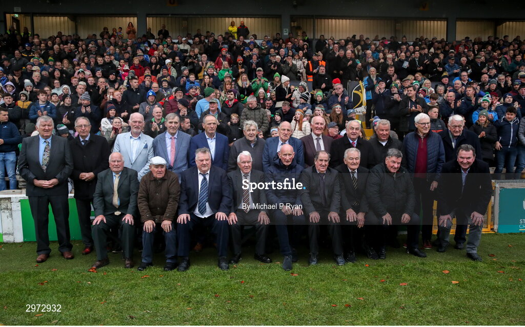 27 October 2024; Members of the Kilkenny 1974/75 All Ireland Hurling winning teams who were honoured at half time during the Kilkenny County Senior Club Hurling Championship final match between O’Loughlin Gaels and Thomastown at UPMC Nowlan Park in Kilkenny. Photo by Michael P Ryan/Sportsfile