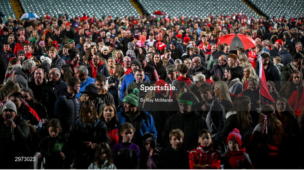27 October 2024; Doon supporters on the pitch during the cup presentation after the Limerick County Senior Club Hurling Championship final match between Na Piarsaigh and Doon at TUS Gaelic Grounds in Limerick. Photo by Ray McManus/Sportsfile