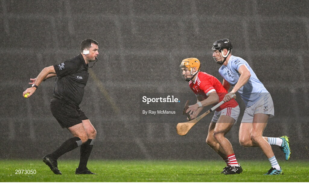 27 October 2024; Referee John O'Halloran throws in the sliotar between Adam English of Doon and Conor Boylan of Na Piarsaigh to start the Limerick County Senior Club Hurling Championship final match between Na Piarsaigh and Doon at TUS Gaelic Grounds in Limerick. Photo by Ray McManus/Sportsfile