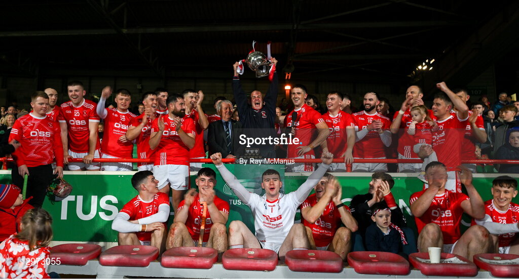27 October 2024; Brian ‘Rocky’ Stapleton of Doon lifts the during the John Daly Cup after the Limerick County Senior Club Hurling Championship final match between Na Piarsaigh and Doon at TUS Gaelic Grounds in Limerick. Photo by Ray McManus/Sportsfile