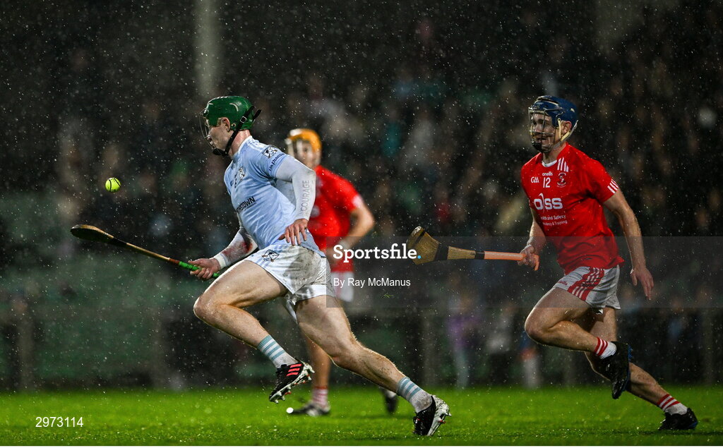 27 October 2024; Mike Foley of Na Piarsaigh races clear of Eddie Stokes of Doon during the Limerick County Senior Club Hurling Championship final match between Na Piarsaigh and Doon at TUS Gaelic Grounds in Limerick. Photo by Ray McManus/Sportsfile