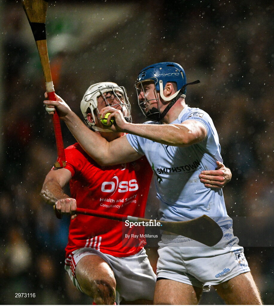 27 October 2024; Jerome Boylan of Na Piarsaigh is tackled by Pat Ryan of Doon during the Limerick County Senior Club Hurling Championship final match between Na Piarsaigh and Doon at TUS Gaelic Grounds in Limerick. Photo by Ray McManus/Sportsfile