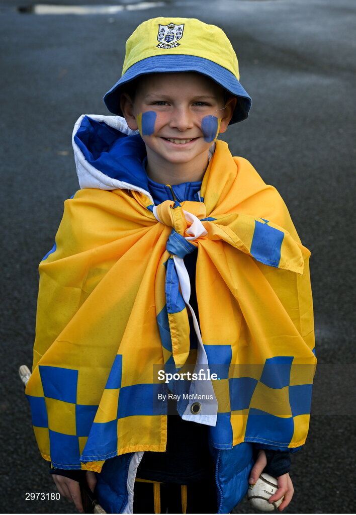 28 October 2024; Nine year old Sixmilebridge supporter Barry Quinn before the Clare County Senior Club Hurling Championship final match between Sixmilebridge and Feakle at Cusack Park in Clare. Photo by Ray McManus/Sportsfile