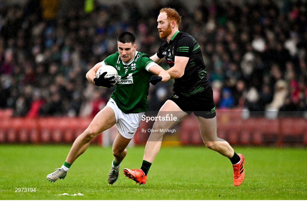 27 October 2024; Conor Doherty of Newbridge in action against Conor Glass of Glen during the Derry County Senior Club Football Championship final match between Glen and Newbridge at Celtic Park in Derry. Photo by Oliver McVeigh/Sportsfile