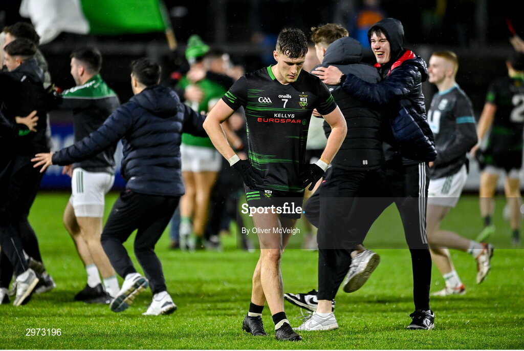 27 October 2024; A dejected Jody McDermott of Glen after the final whistle in the Derry County Senior Club Football Championship final match between Glen and Newbridge at Celtic Park in Derry. Photo by Oliver McVeigh/Sportsfile