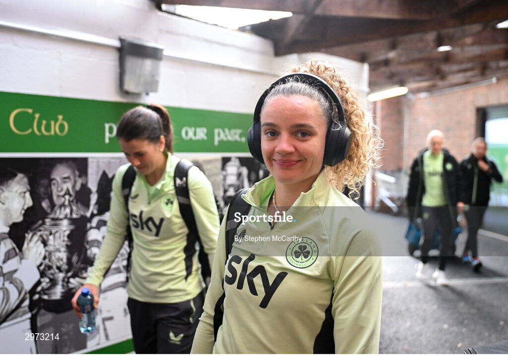 28 October 2024; Leanne Kiernan arrives for a Republic of Ireland women's training session at Tallaght Stadium in Dublin. Photo by Stephen McCarthy/Sportsfile