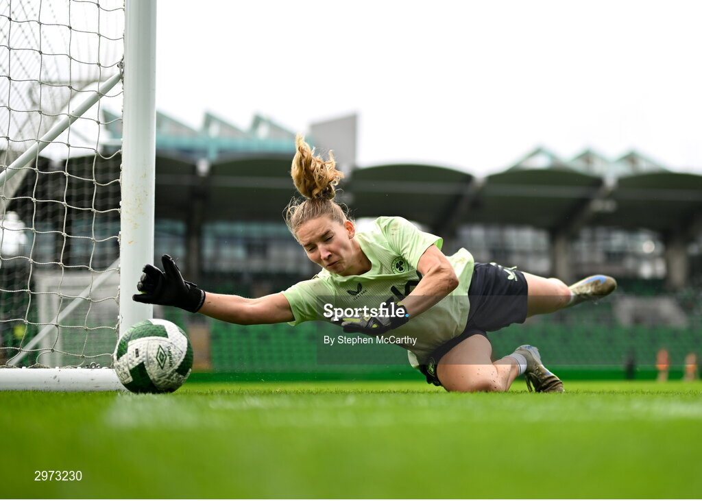 28 October 2024; Goalkeeper Sophie Whitehouse during a Republic of Ireland women's training session at Tallaght Stadium in Dublin. Photo by Stephen McCarthy/Sportsfile