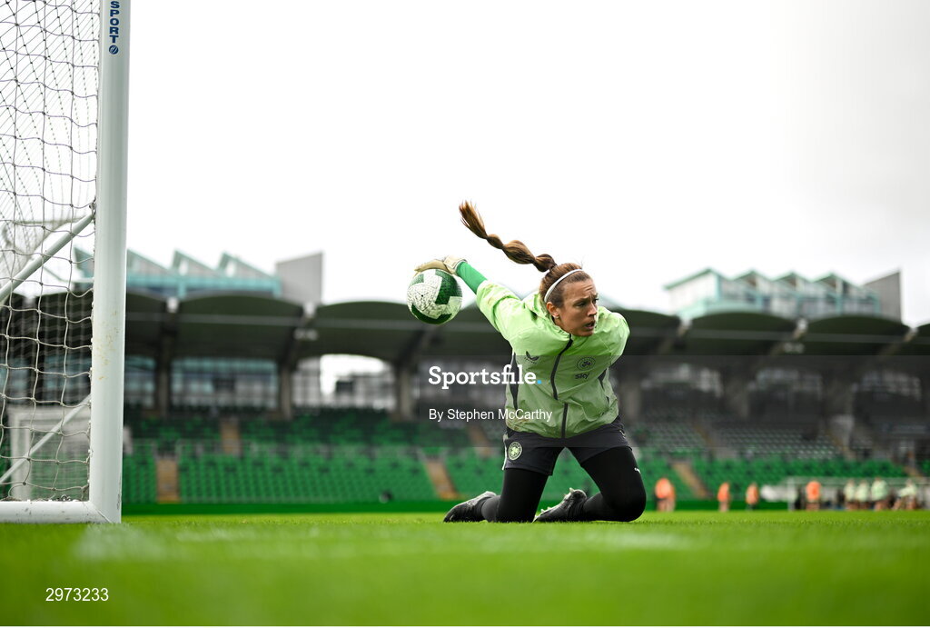 28 October 2024; Goalkeeper Grace Moloney during a Republic of Ireland women's training session at Tallaght Stadium in Dublin. Photo by Stephen McCarthy/Sportsfile