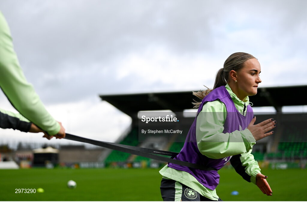 28 October 2024; Izzy Atkinson during a Republic of Ireland women's training session at Tallaght Stadium in Dublin. Photo by Stephen McCarthy/Sportsfile