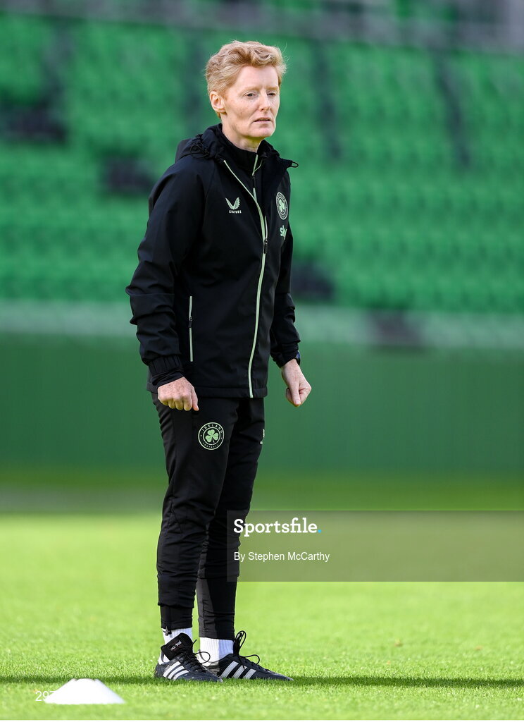 28 October 2024; Head coach Eileen Gleeson during a Republic of Ireland women's training session at Tallaght Stadium in Dublin. Photo by Stephen McCarthy/Sportsfile