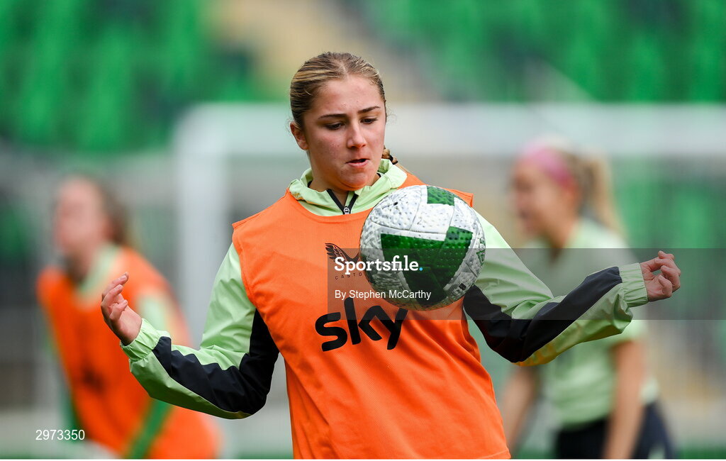 28 October 2024; Ellen Molloy during a Republic of Ireland women's training session at Tallaght Stadium in Dublin. Photo by Stephen McCarthy/Sportsfile