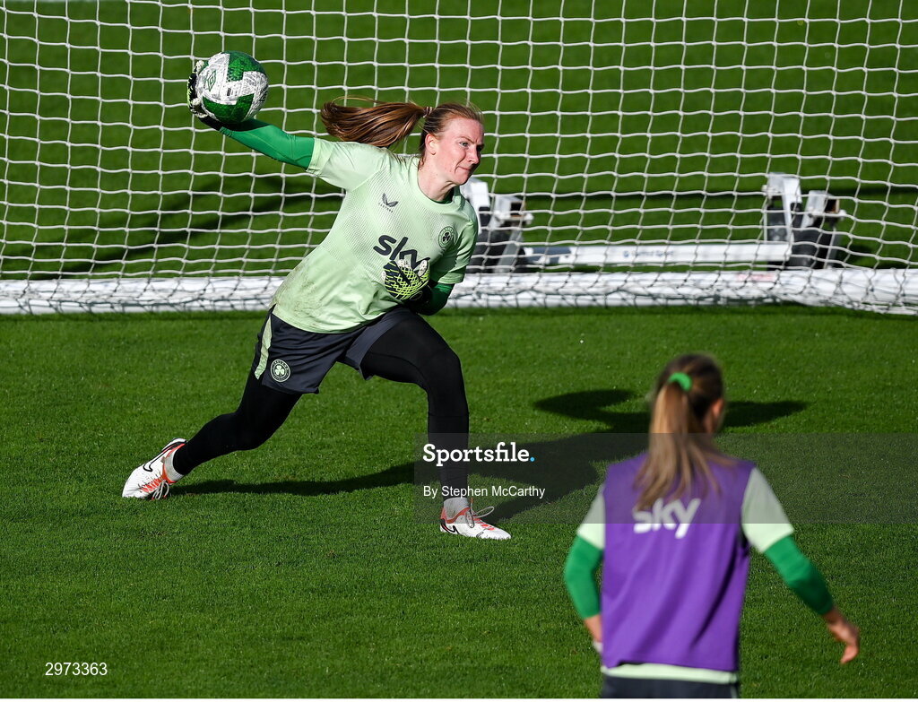 28 October 2024; Goalkeeper Courtney Brosnan during a Republic of Ireland women's training session at Tallaght Stadium in Dublin. Photo by Stephen McCarthy/Sportsfile