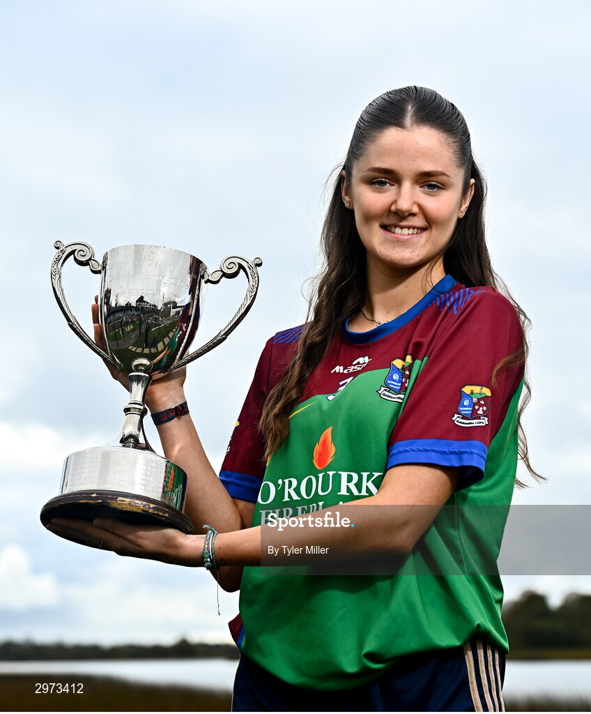 28 October 2024; Eva Fitzpatrick of Goldsmiths poses for a portrait at the AIB Leinster LGFA Club Finals’ Captains’ Day at Wineport Lodge in Westmeath. Photo by Tyler Miller/Sportsfile