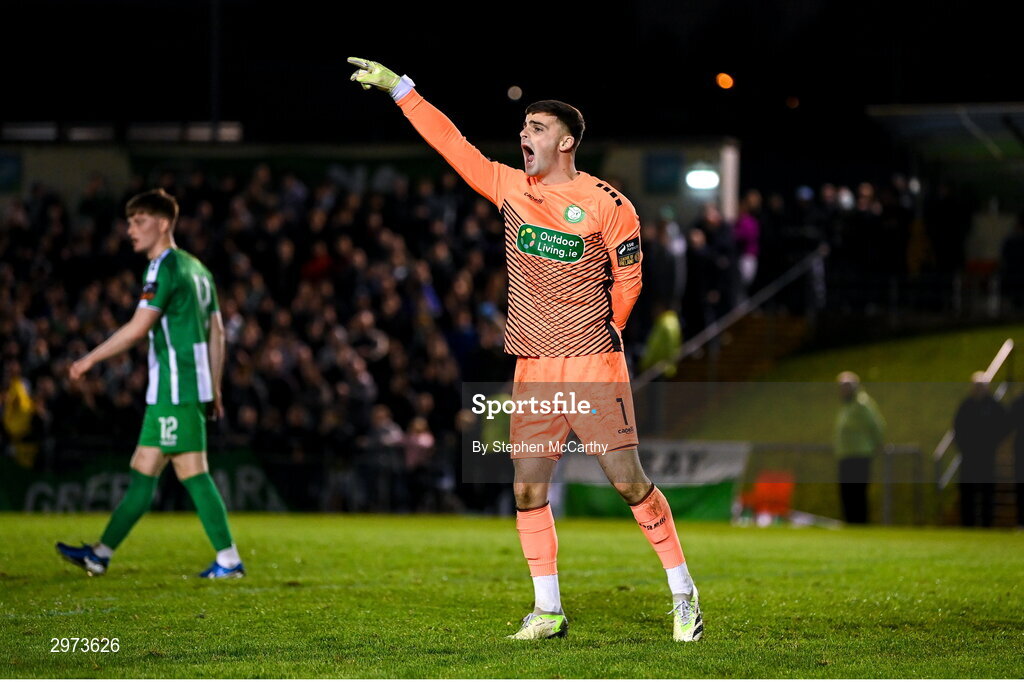 28 October 2024; Bray Wanderers goalkeeper Jimmy Corcoran during the SSE Airtricity Men's First Division play-off semi-final second leg match between UCD and Bray Wanderers at UCD Bowl in Dublin. Photo by Stephen McCarthy/Sportsfile