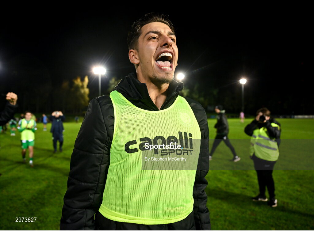 28 October 2024; Cristian Magerusan of Bray Wanderers celebrates after the SSE Airtricity Men's First Division play-off semi-final second leg match between UCD and Bray Wanderers at UCD Bowl in Dublin. Photo by Stephen McCarthy/Sportsfile
