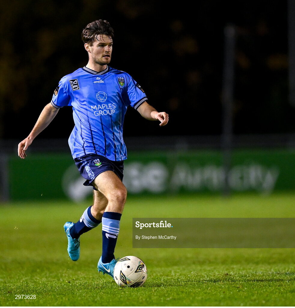 28 October 2024; Donal Higgins of UCD during the SSE Airtricity Men's First Division play-off semi-final second leg match between UCD and Bray Wanderers at UCD Bowl in Dublin. Photo by Stephen McCarthy/Sportsfile