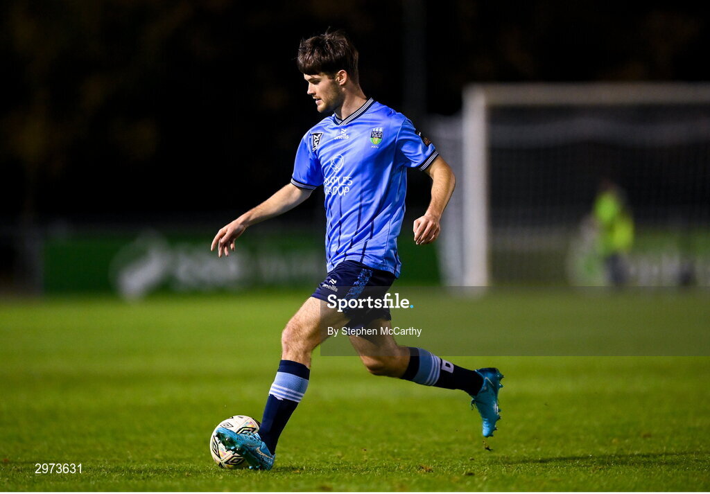 28 October 2024; Donal Higgins of UCD during the SSE Airtricity Men's First Division play-off semi-final second leg match between UCD and Bray Wanderers at UCD Bowl in Dublin. Photo by Stephen McCarthy/Sportsfile