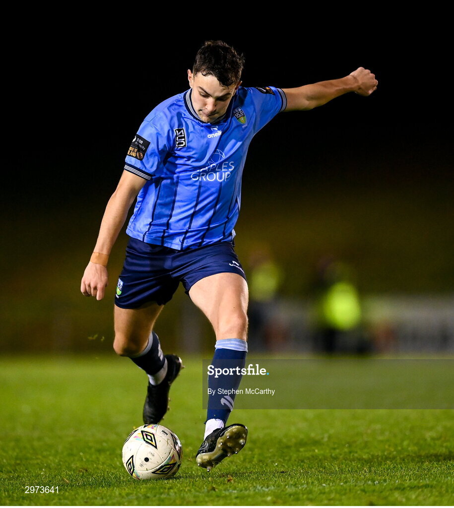 28 October 2024; Eanna Clancy of UCD during the SSE Airtricity Men's First Division play-off semi-final second leg match between UCD and Bray Wanderers at UCD Bowl in Dublin. Photo by Stephen McCarthy/Sportsfile