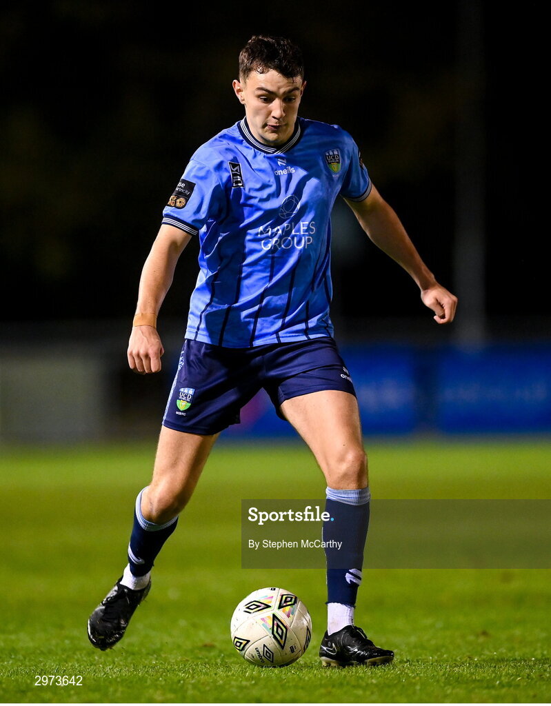 28 October 2024; Eanna Clancy of UCD during the SSE Airtricity Men's First Division play-off semi-final second leg match between UCD and Bray Wanderers at UCD Bowl in Dublin. Photo by Stephen McCarthy/Sportsfile
