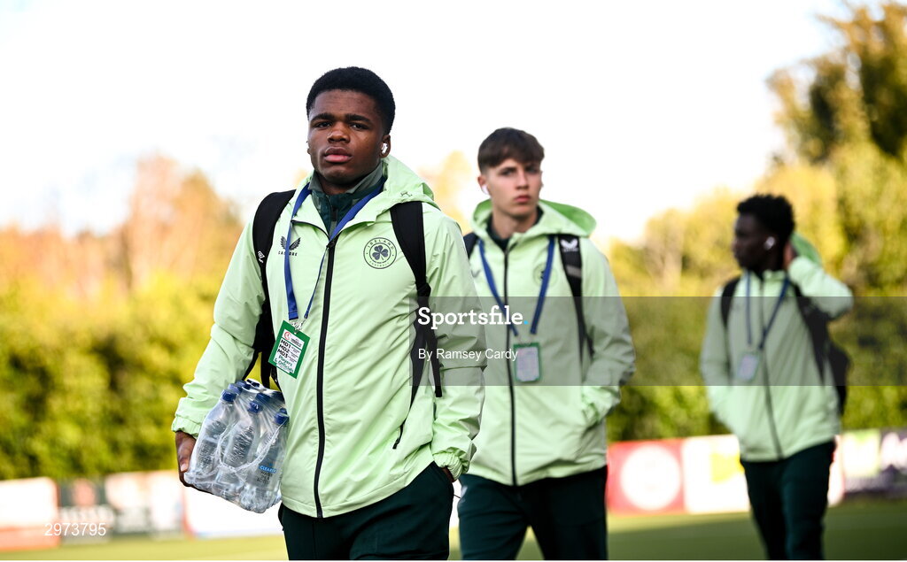 29 October 2024; Goodness Ogbonna of Republic of Ireland before the UEFA U17 European Championships Round 1 Qualifier match between Republic of Ireland and Lithuania at Inver Park in Larne, Antrim. Photo by Ramsey Cardy/Sportsfile