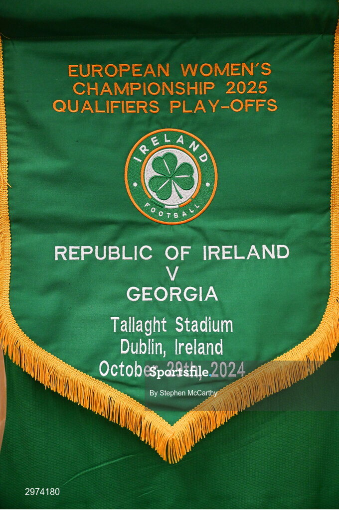 29 October 2024; A general view of the Republic of Ireland match pennant in their dressing room before the UEFA Women's EURO 2025 Play-Off Round 1 second leg match between Republic of Ireland and Georgia at Tallaght Stadium in Dublin. Photo by Stephen McCarthy/Sportsfile