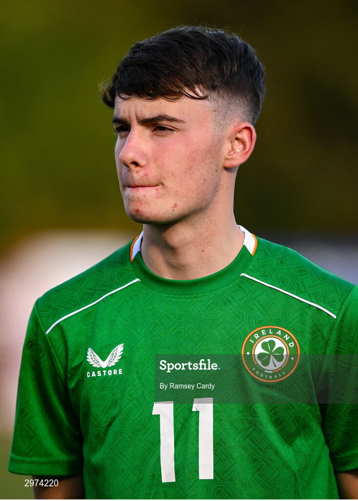29 October 2024; Billy Hayes of Republic of Ireland before the UEFA U17 European Championships Round 1 Qualifier match between Republic of Ireland and Lithuania at Inver Park in Larne, Antrim. Photo by Ramsey Cardy/Sportsfile