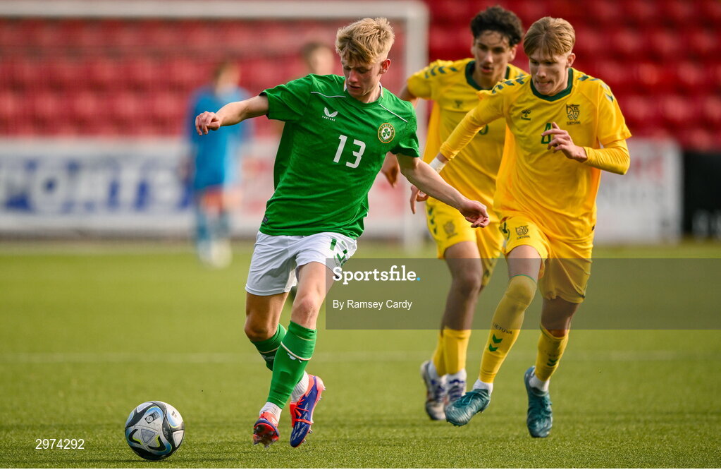 29 October 2024; Oscar Skubo-Keely of Republic of Ireland during the UEFA U17 European Championships Round 1 Qualifier match between Republic of Ireland and Lithuania at Inver Park in Larne, Antrim. Photo by Ramsey Cardy/Sportsfile