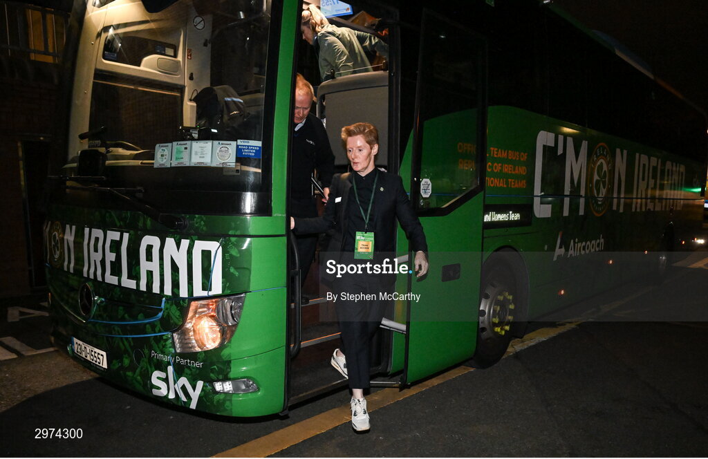 29 October 2024; Republic of Ireland head coach Eileen Gleeson arrives before the UEFA Women's EURO 2025 Play-Off Round 1 second leg match between Republic of Ireland and Georgia at Tallaght Stadium in Dublin. Photo by Stephen McCarthy/Sportsfile